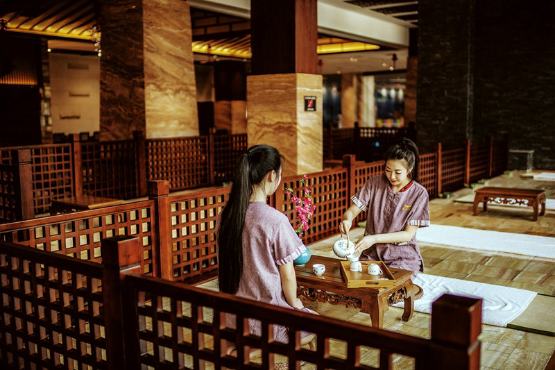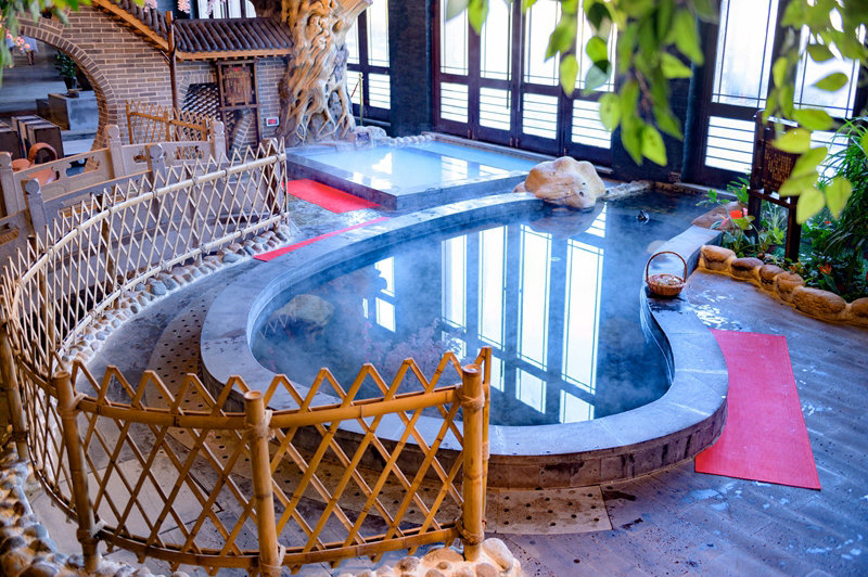 置身于溫泉泡池,遠處樹木蔥蘢,山疊玉翠,河水湯湯,難辨仙源。近處樹石亭臺,泉霧縹緲,移步換景,動人心弦。溫泉區(qū)包括中藥養(yǎng)生區(qū)、金湯藥浴四季五行池、滋補養(yǎng)顏區(qū)、室內(nèi)泳館、兒童戲水池、溫泉石板浴、高溫汗蒸房、水療池及無邊界泳池等,將溫泉的養(yǎng)生性與強體性結(jié)合,既符合傳統(tǒng)養(yǎng)生文化又融入時代歡樂主題。